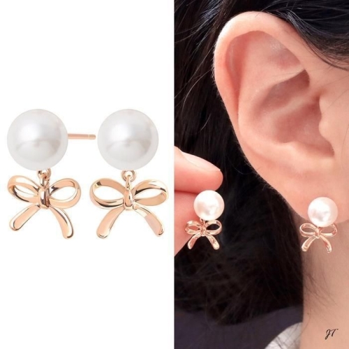 미니아트 14K 골드필드 핀 진주 리본 드롭 하객 결혼식 귀걸이 40731567