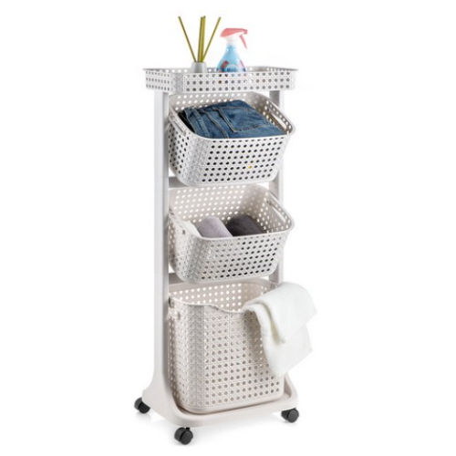 코멧 홈 이동식 트롤리 멀티 빨래바구니 3단