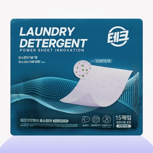 LG생활건강 테크 한장빨래 효소캡처 이노베이션 라벤더 15매 (1개)