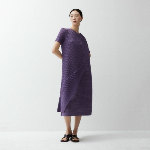 플리츠미 여성 숏 슬리브 언발란스 사선 원피스 EPOPM124043