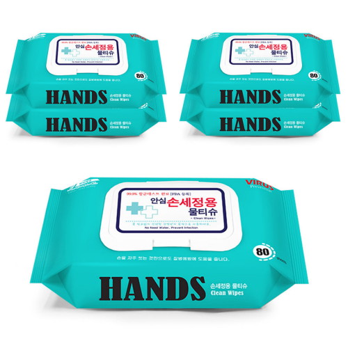 티엔비 하비앙쥬 손세정 물티슈 캡형 80매 (5팩)