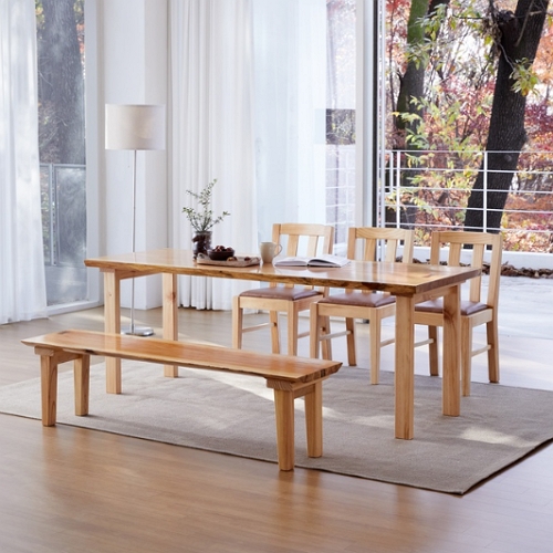 프라이드리빙 해찬솔원목이야기 우드슬랩 북미산오크 통원목 식탁 1800 (의자3개+벤치1개)