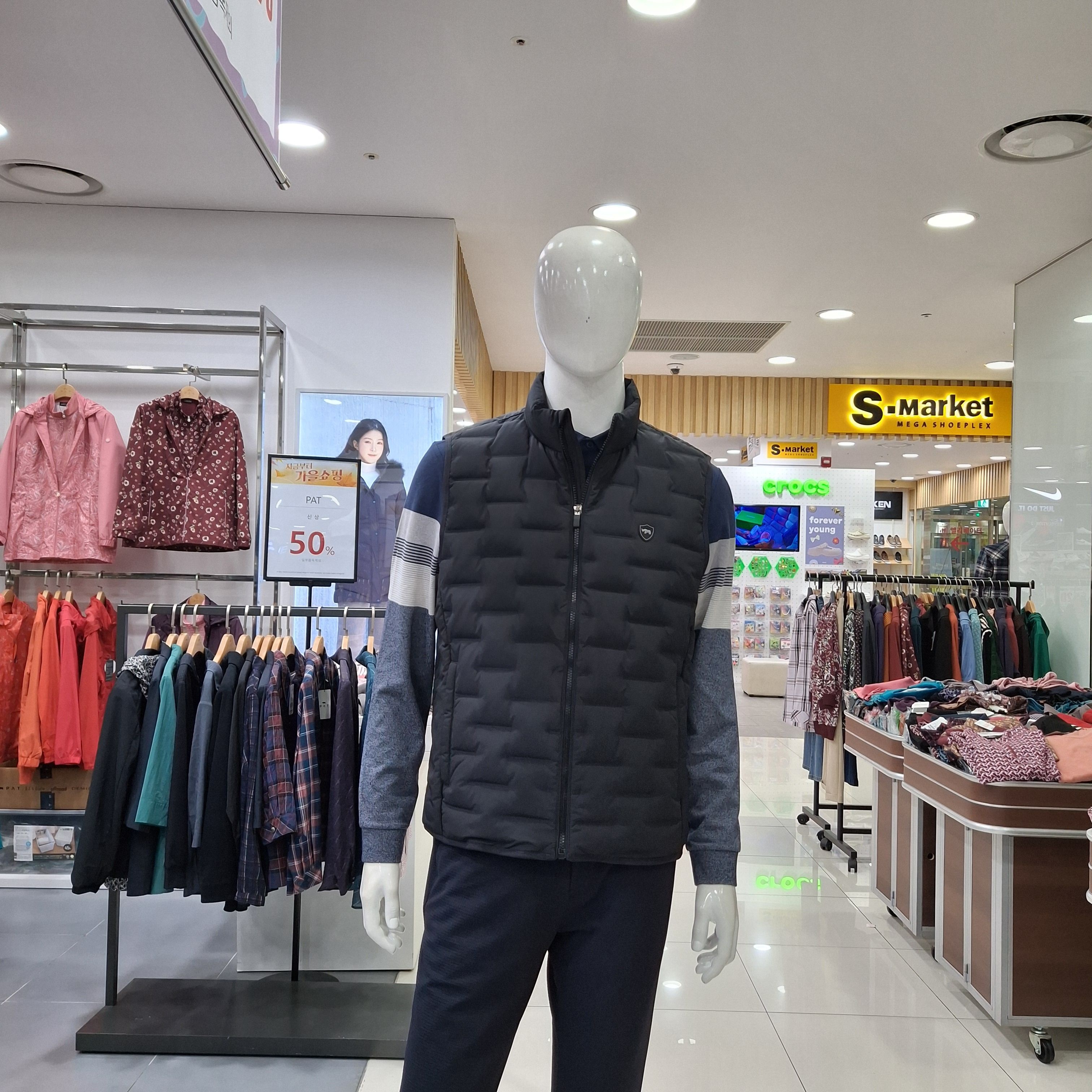 아즈바이 남자 V넥 버튼 슬림 경량 패딩 조끼 PUSV3 가을 겨울 384166Moony