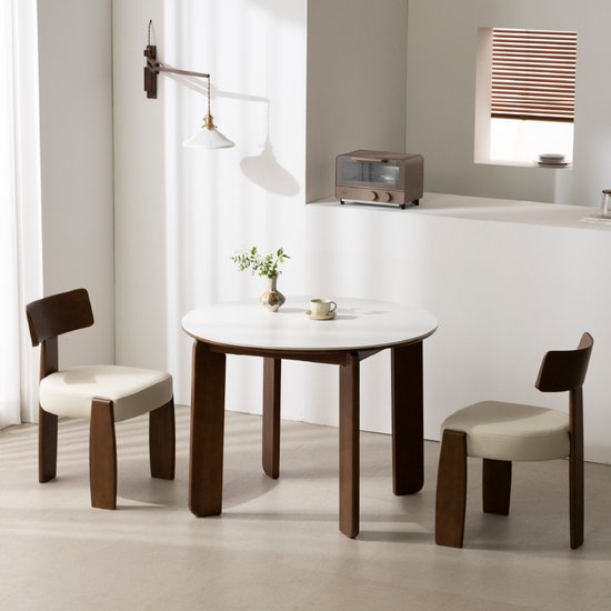 카펜터홈 페피 원형 원목 포세린 세라믹 식탁 1000 (모아이의자2개)