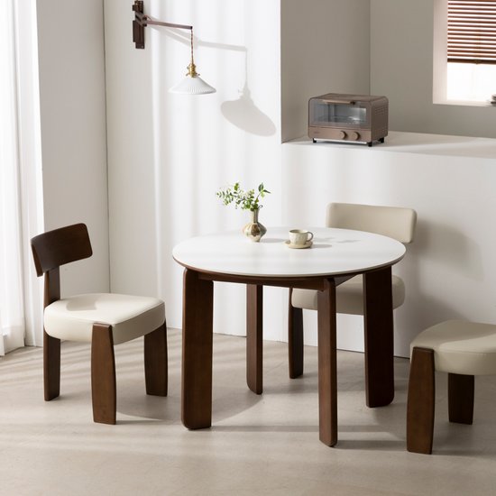 카펜터홈 페피 원형 원목 포세린 세라믹 식탁 1000 (모아이의자4개)