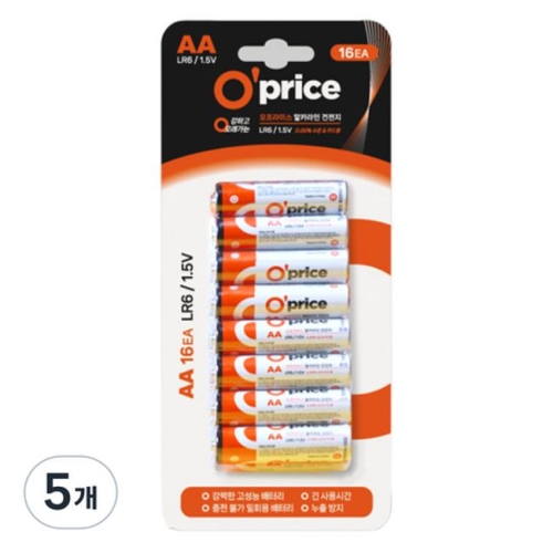 오프라이스 알카라인 AA건전지 16개입 (5개)