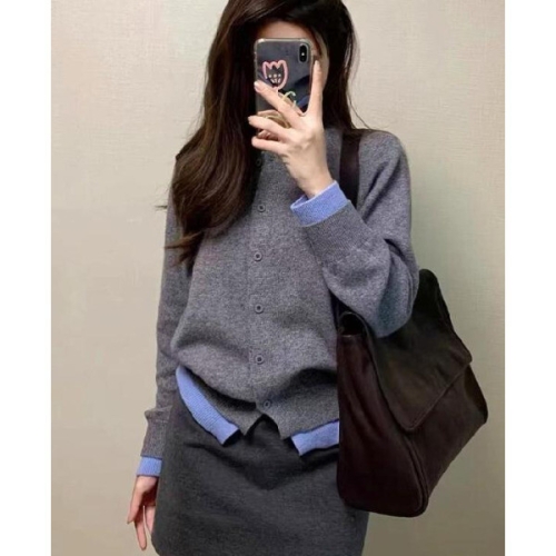 기타 플로렌 브린 배색 이중 가디건 NSNS002