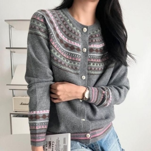 위니아 모던 노르딕패턴 포근한 그레이 스웨터카디건 WFKK5RH