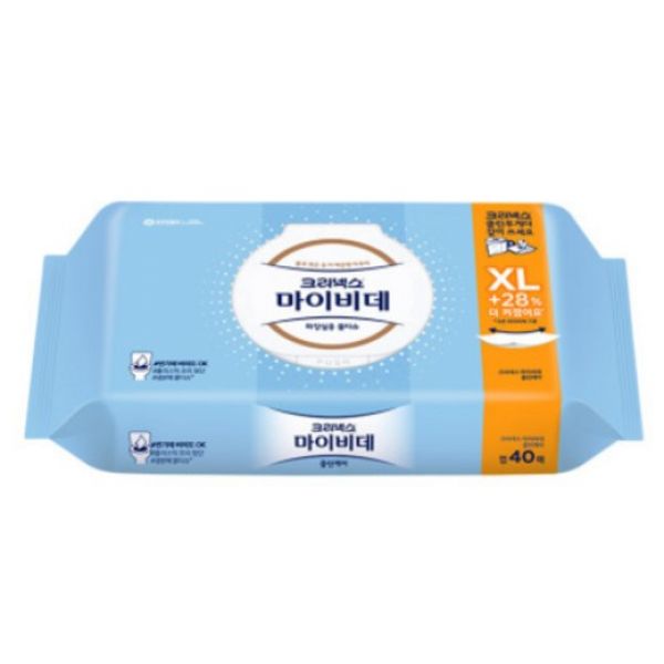 유한킴벌리 크리넥스 마이비데 클린케어 엑스라지 화장실용 물티슈 캡형 40매 (12팩)