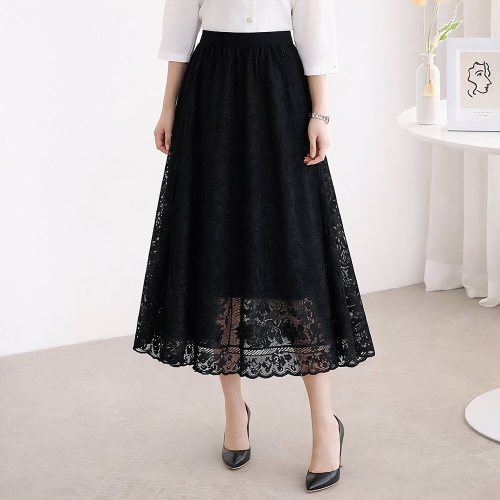 모리스커밍홈 볼륨 레이스 플레어 밴딩 스커트_M2602SK601A
