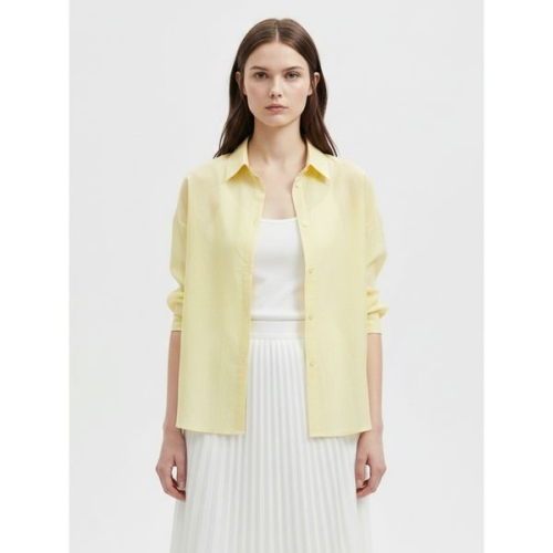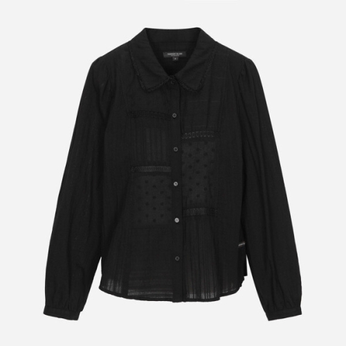 지엔코 써스데이아일랜드 소재 믹스 셔츠형 블라우스 T256MBL162W