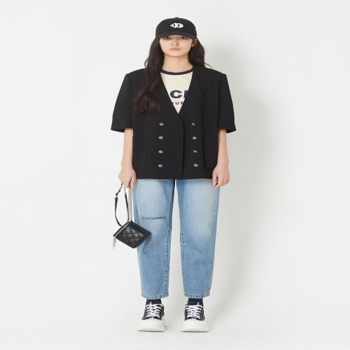 럭키슈에뜨 여성 노카라 반소매 더블자켓 LQJAM23540BJ
