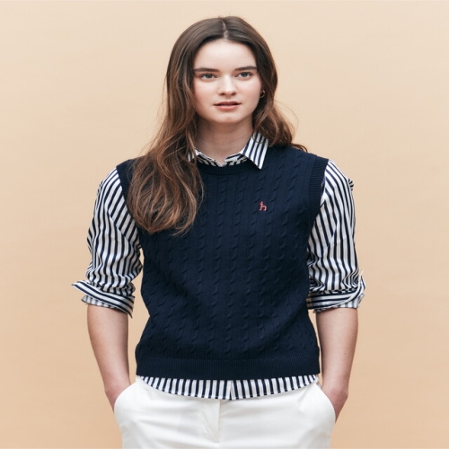 LF 헤지스레이디스 여성 네이비 케이블 라운드넥 베스트 WSSW5AC13N2