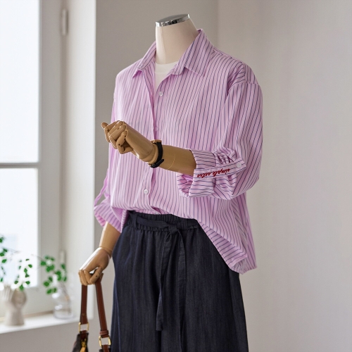 커스텀에이블 자수 롤업 스트라이프 셔츠_T2604BL049A