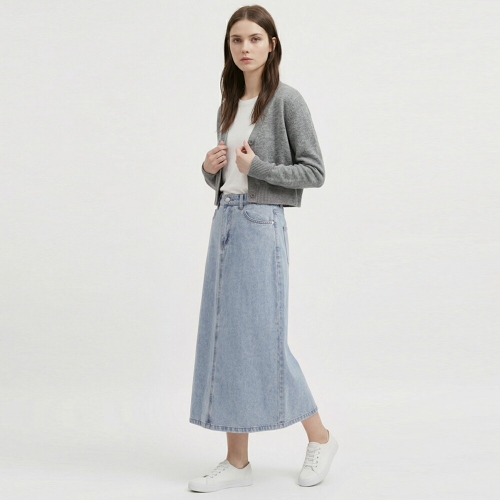 샵앤 여성 뒷밴딩 청 3컬러 5사이즈 2단기장 데님 스커트 SR-WSK-21159-21 연블루