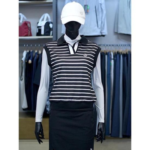 팜스프링스 세이브존03 여성 골프 봄 여름 스트라이프 카라 니트 베스트 AQ55600A