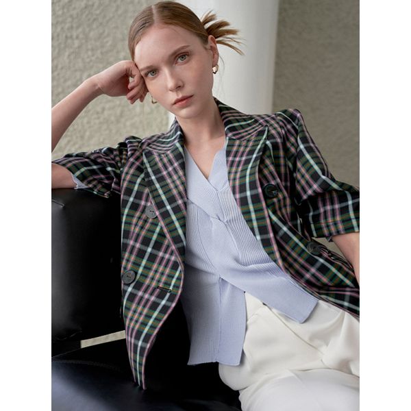 미쥬 르니앤맥코이 르니 펑키 자수 타탄 체크 패턴 더블 반팔 자켓 MK06JK200HJJ