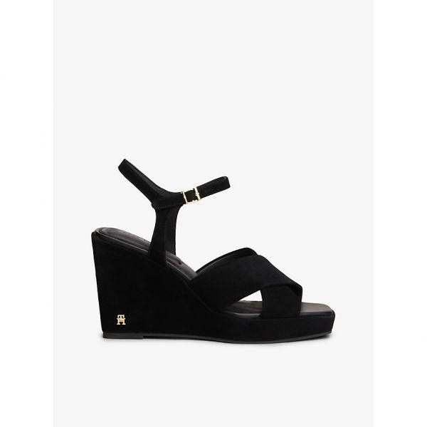 타미힐피거 우먼 스웨이드 하이 웨지 힐 샌들 블랙 FW0FW09218BDS