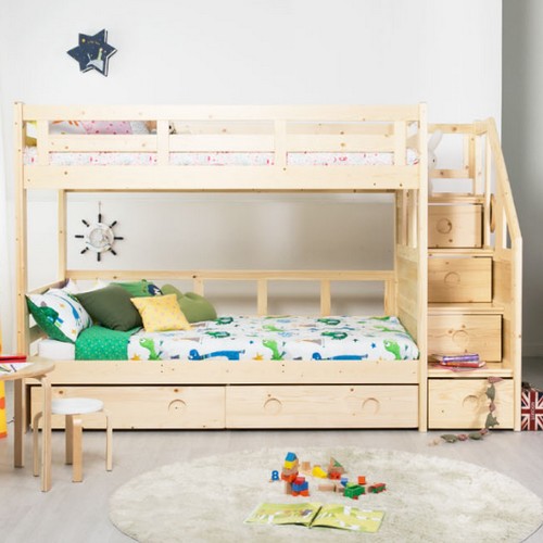 에보니아 미키 계단수납형 원목 2층침대 SS (메모리폼)