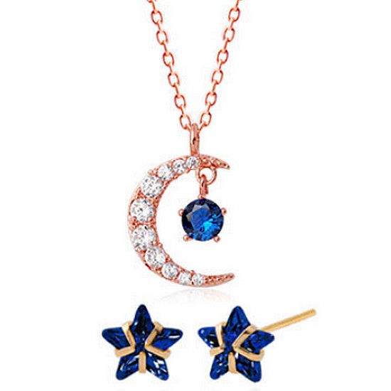 미니아트 탄생석 컬러 목걸이+귀걸이 2종세트 9월 사파이어 RS490+GT125