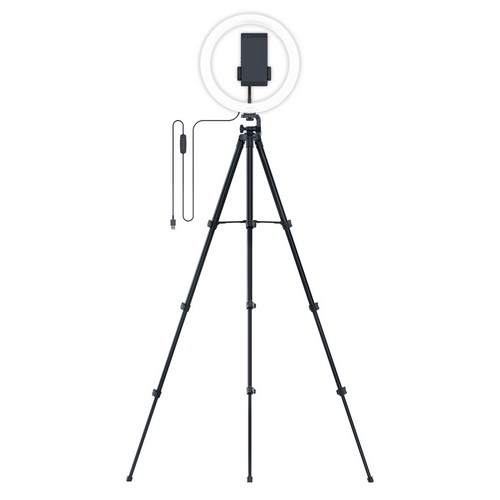 전력:10W밝기:500lm색온도:3000~6500KLED개수:192개10~100% 밝기조절9단계밝기조절전원:USB구성품:링라이트, 컨트롤러, 삼각대, 스마트폰홀더, 볼헤더
