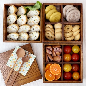 코지테이블 나무 사각 찬합 3단 소풍 도시락통