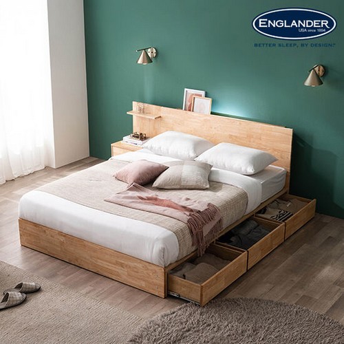 잉글랜더 마리나 원목 수납 LED침대 Q+협탁 (양모케미컬폼65T필로우탑9존독립)