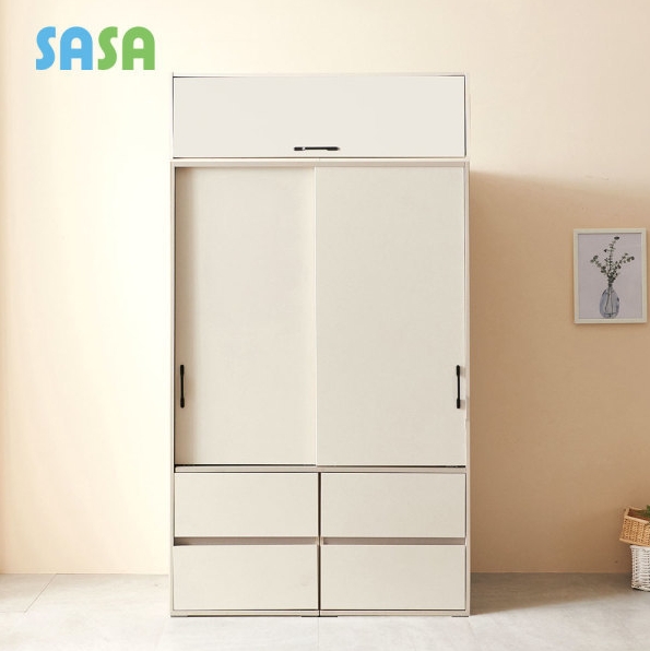사사가구 빅 슬라이딩 행거 서랍형+상부장 옷장 1200