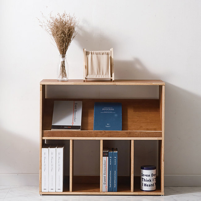 데코앤비 고무나무 원목 전면 2단 책장 800