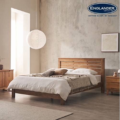 잉글랜더 토론토 고무나무 통깔판 원목 침대 Q (매트별도)