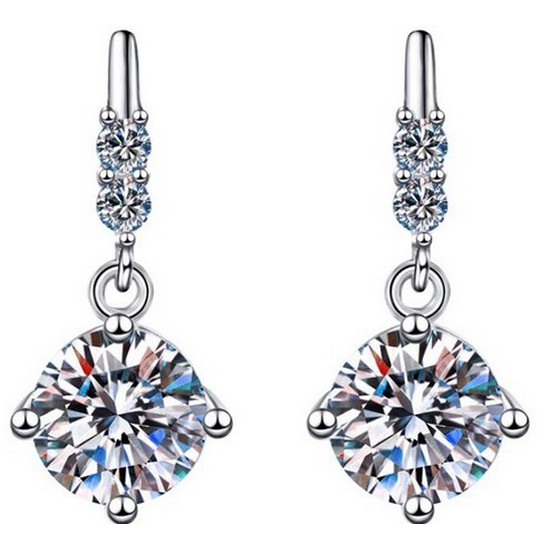 남대문주얼리 엑설런트등급 모이사나이트 1캐럿 925실버 솔리테어 드랍 다이아 귀걸이