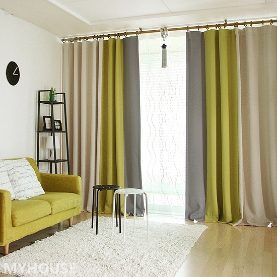 마이하우스 옐로우그레이 3중암막커튼 (320x230cm, 봉포함)