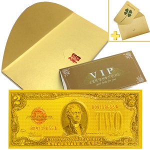 럭키심볼 행운의 VIP황금지폐 황금 2달러 + 황금 네잎클로버