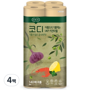 쌍용C&B 코디 아름드리 기름먹는 UKP 키친타올 140매 (8롤) (4팩)