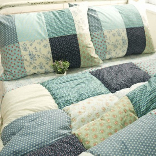 마마스룸 안데르센 블루 패치 스프레드형이불 기본세트 (퀸 Q+베개커버2장)
