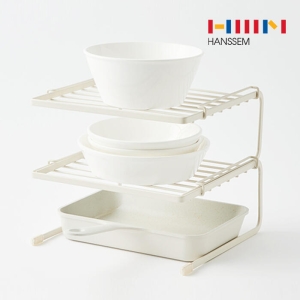 한샘 주방정리용품 SOK 마일드 2단 정리대 M 크림 싱크대선반 씽크대수납 그릇 접시거치대 다용도렉 예쁜