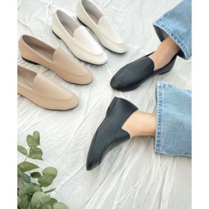 여성 심플 베이직 레더 플랫 통굽 로퍼 RJ-r2135