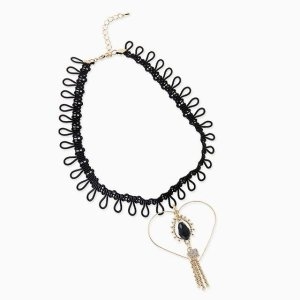 폭스타일 PST 스윗걸 초커 목걸이 드롭 빅 왕관 체인