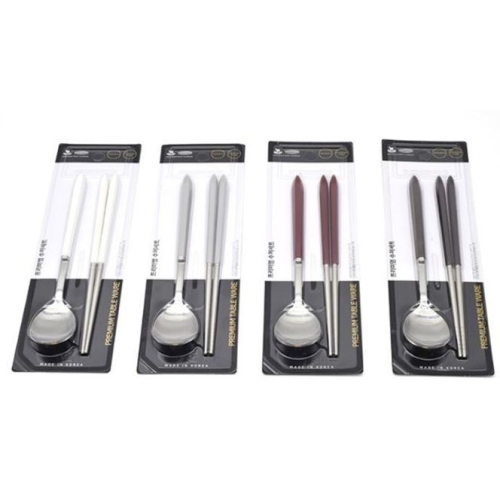 신우 국산 진공 수저세트 스텐 수저 젓가락 세트 레드