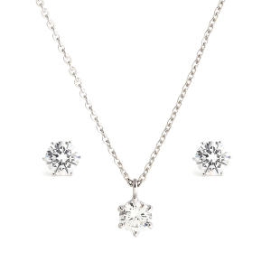 비앤비골드 14K 심플 프롱셋팅 4.75mm 큐빅 주얼리세트 (귀걸이+목걸이)_NPS30125