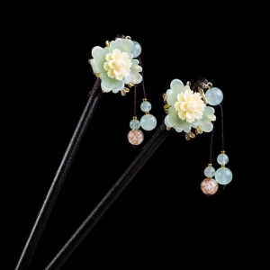 옷자락 여자 비녀 원석 금장 옥빛 상견례 한복 플라워 머리핀