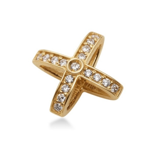 비앤비골드 여성 18K 심플 스톤라인 십자가 큐빅 팬던트_NPP14827