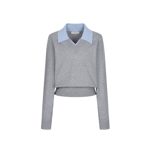 예시카 카라 배색 브이넥 니트 YICKP258