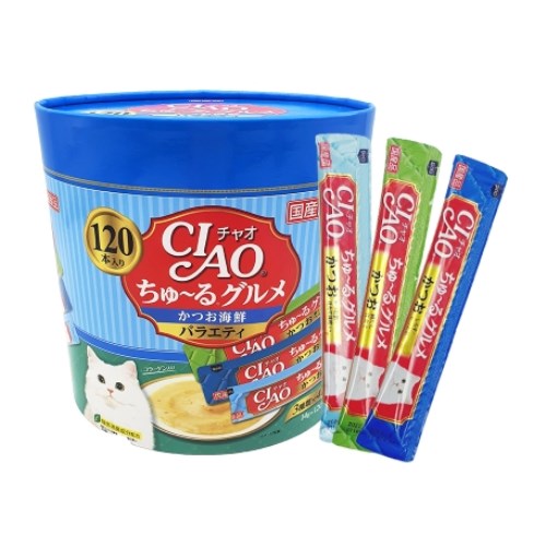 이나바 캣 챠오츄르 구루메 가다랑어&해산물 버라이어티 SC-212 1680g (14g x 120p) (1개)