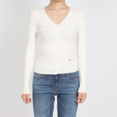 게스 여성 브이넥 슬림 단추 가디건_YL1S2652