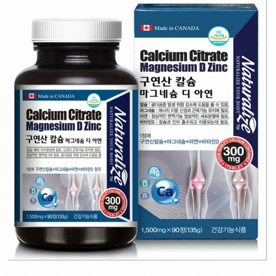 한국바이오팜 네추럴라이즈 구연산 칼슘 마그네슘 디 아연 90정 (4개)