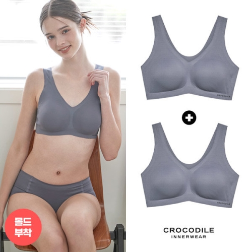 패션그룹형지 크로커다일 감탄 라이크라 쉘론 몰드부착 V넥 브래지어 2종 (마린블루)