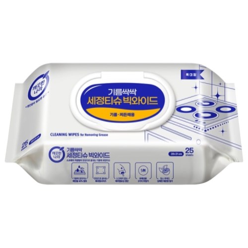 깨끗한나라 기름싹싹 세정티슈 빅와이드 캡형 25매 (3팩)