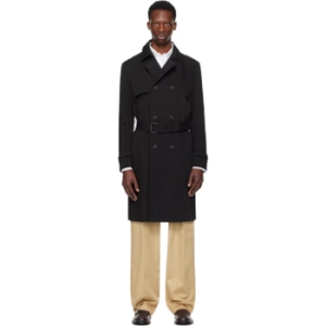 휴고 보스 Hugo 남성 블랙 개버딘 트렌치 코트 252084M184000