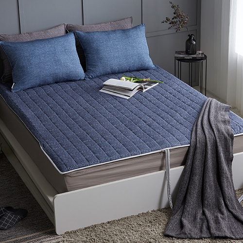 쇼핑스토리엔 르헤브 샤샤 누빔 진블루 온수매트 커버 (싱글, 100x200cm)